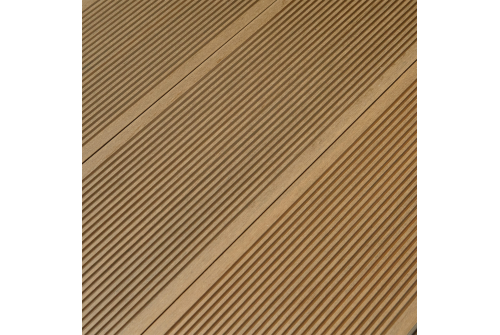 У террасной доски MIX две рабочих поверхности: с одной стороны - текстура брашинг, с другой - мелкий вельвет. Каждая из них зашлифована и обладает эффектом «Антислип». Благодаря этому доска не становится скользкой при намокании.