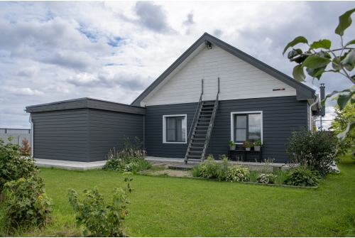 - При использовании покрытия Colority® Print, «ЭкоБрус GL» достигает максимального сходства с клееным брусом. Надежное скрытое сцепление панелей придает фасаду здания естественный вид.