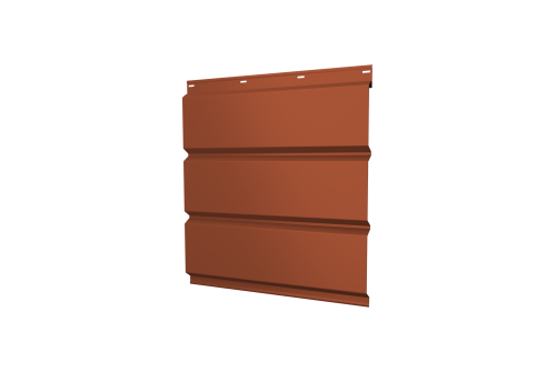 Описание товара: "Софит металлический без перфорации 0,5 PurLite Мatt с пленкой RAL 8004 терракота"